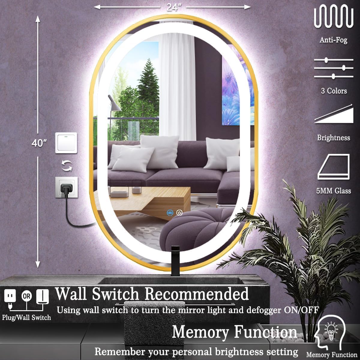 | Additional Features | 3 Color Changing, Dimmable, Fogless, Gold Frame, Touch Sensor |
