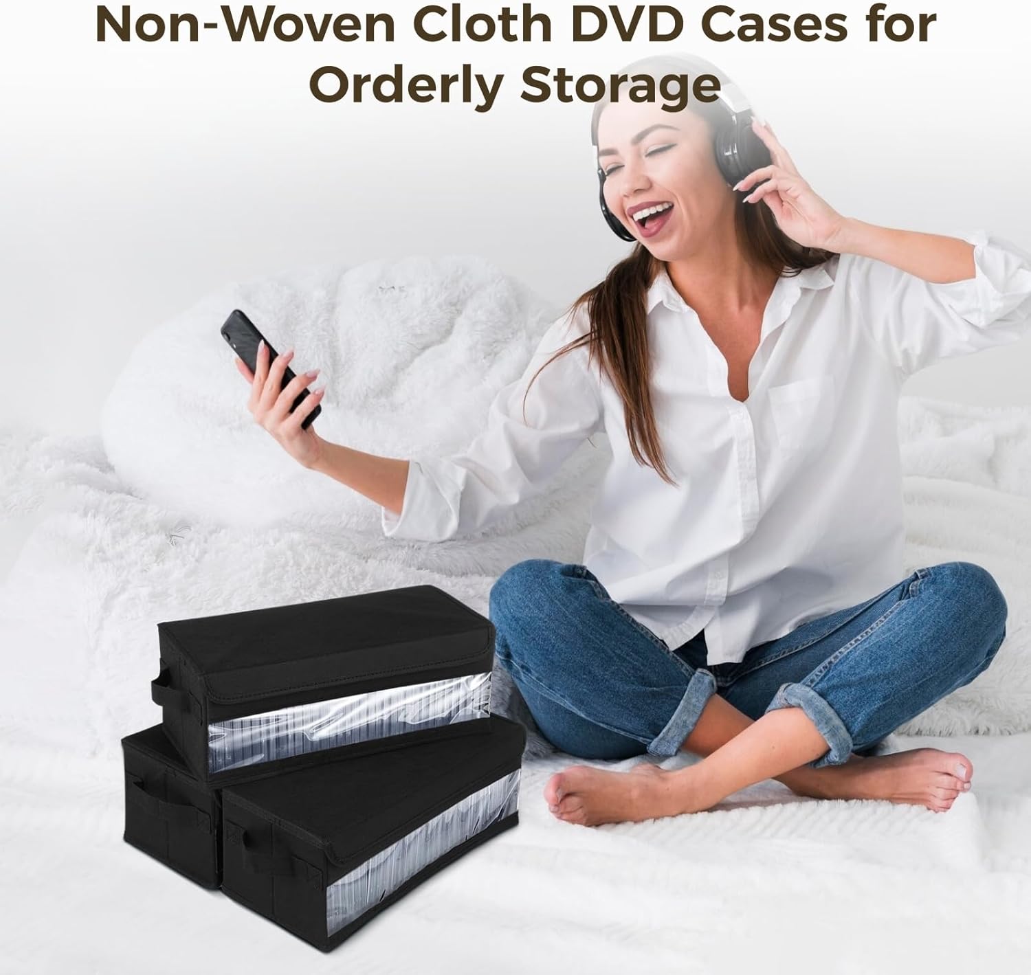 Color: black Material: non-woven cloth Product size: 14.2 x 6.3 x 5.5 Inches Package Includes: CD Storage Box x 3 Note: - Please refer to the measurement. Tiny measuring error is allowable in normal range. - There might be a little color difference due to the monitor, camera or other factors, please refer to the physical item.