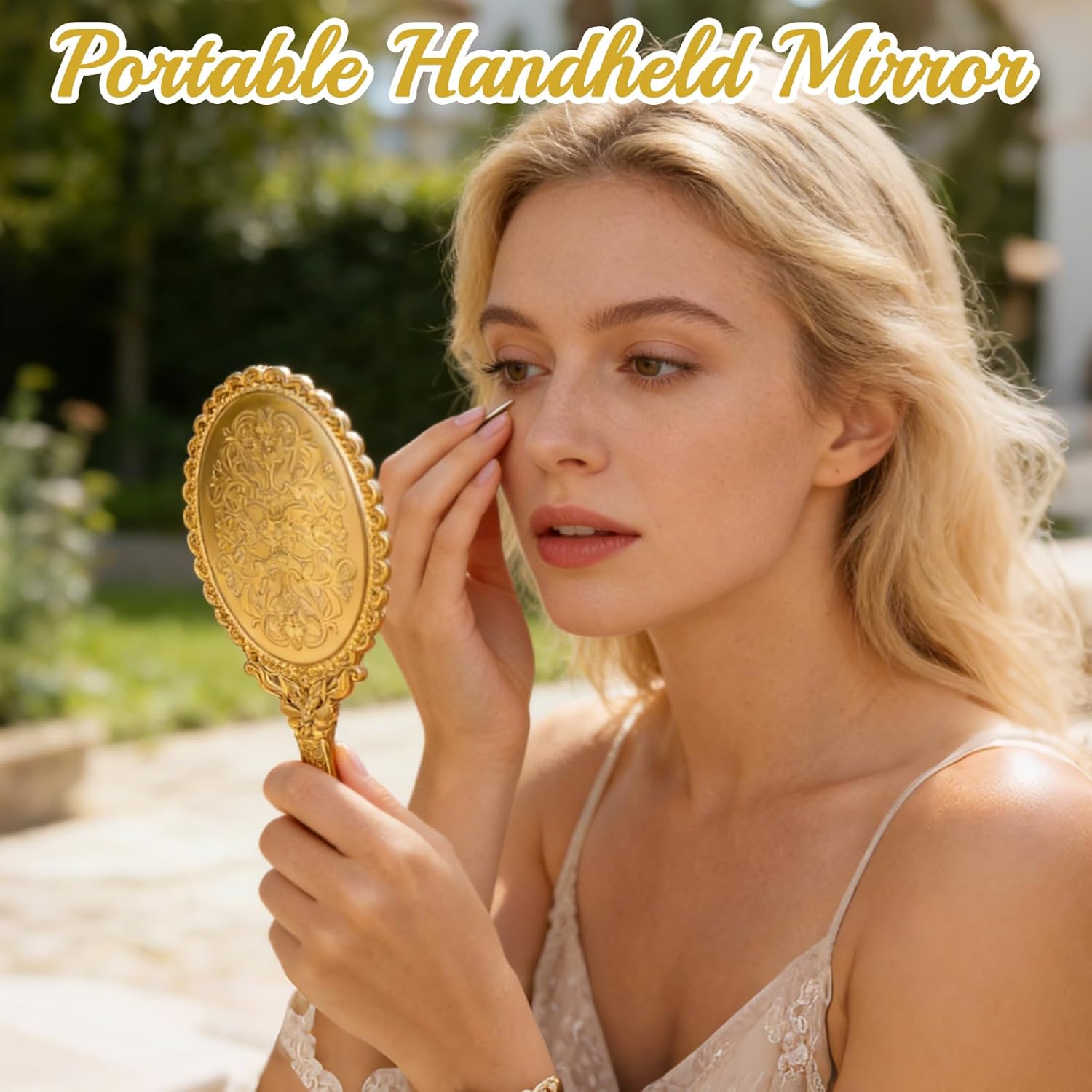 Features: This 48-pack of vintage handheld mirrors features gold embossed floral designs with sturdy handles for easy use. Compact and portable, they provide a crystal-clear reflection for makeup, skincare, or styling. Perfect as party favors, classroom gifts, or elegant accessories for women on the go. Specifications: Material: plastic Color: gold Size: 7.1 x 3.35 inches Package includes: 48 x golden handheld mirror Notes: For manual measurement, please allow slight errors in size. The color may have a slight difference due to different screen displays.