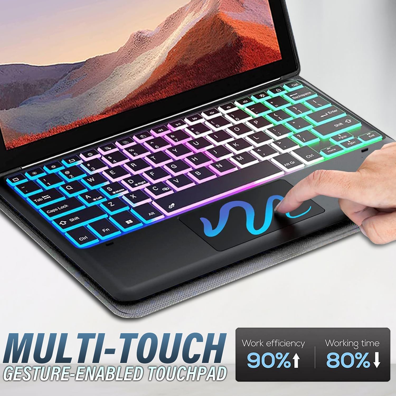 Backlit Touchpad Keyboard Case for Microsoft Surface Pro 7 Plus, 6, 5, 4 - 12.3 Inch Tablet, 3-Zone Wireless Keyboard With Slim Stand Cover