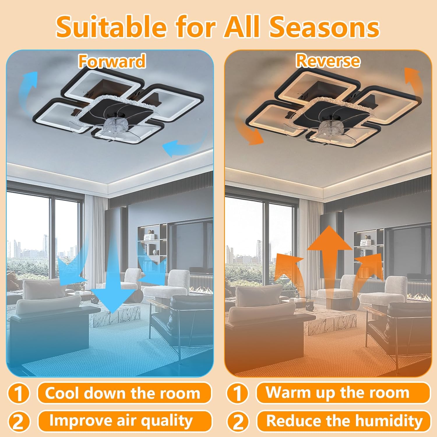 Product Introduction: Ceiling fan with multifunctional light for comfortable user experience Product: Ceiling Fan Lamp Style: Modern Material: Acrylic + Alloy. Light source: LED Power: 60W Voltage: 220V Weight: 3 kg Dimensions: 56 cm (L) x 56 cm (W) x 13 cm (H) (please refer to the size chart for details). Functions: Reversible, 6 Speeds, Quiet, Adjustable Brightness, Memory Function, 3 Light Temperatures, Remote Control, App, High Color Rendering Index, No Blinking Suitable spaces: living room, bedroom, study, guest room, etc. Package List: 1 x fan lamp. 1 x remote control. 1 x user manual. 1 x installation accessories.