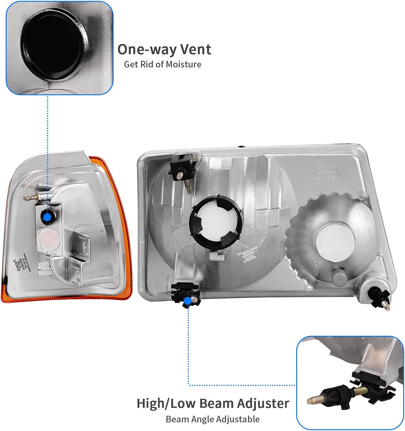 | Additional Features | 1 Pair of Headlights (Driver and Passenger Side), Direct Fit, Premium Quality |