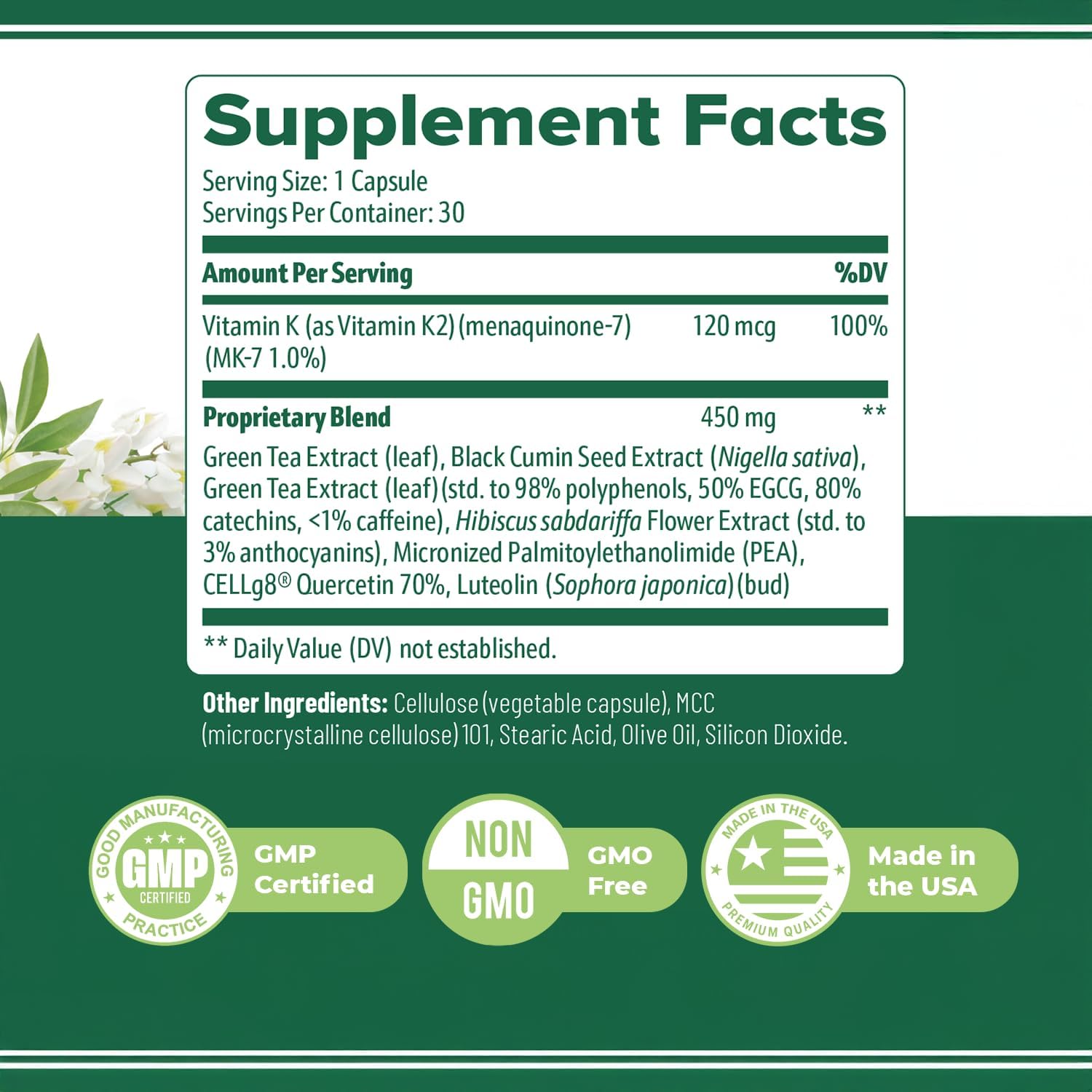 Flexigenics is a natural supplement designed to complement your daily wellness routine. This blend of carefully selected ingredients, including green tea extract, black cumin seed, quercetin, and hibiscus, is formulated to support your overall well-being throughout the day.The formula features a proprietary blend of botanicals and essential nutrients, including Vitamin K2, that work together to help maintain balance and general health. Flexigenics is designed for easy use—just one capsule a day helps you maintain comfort and flexibility as part of your active lifestyle.With a focus on clean ingredients and non-GMO sourcing, Flexigenics is free from artificial additives and stimulants, offering a natural, safe option to complement your daily health regimen. Manufactured in the USA in a GMP-certified facility, Flexigenics meets the highest standards of quality and consistency.Incorporate Flexigenics into your daily routine to help promote balance and overall health without the need for harsh or unnecessary ingredients.