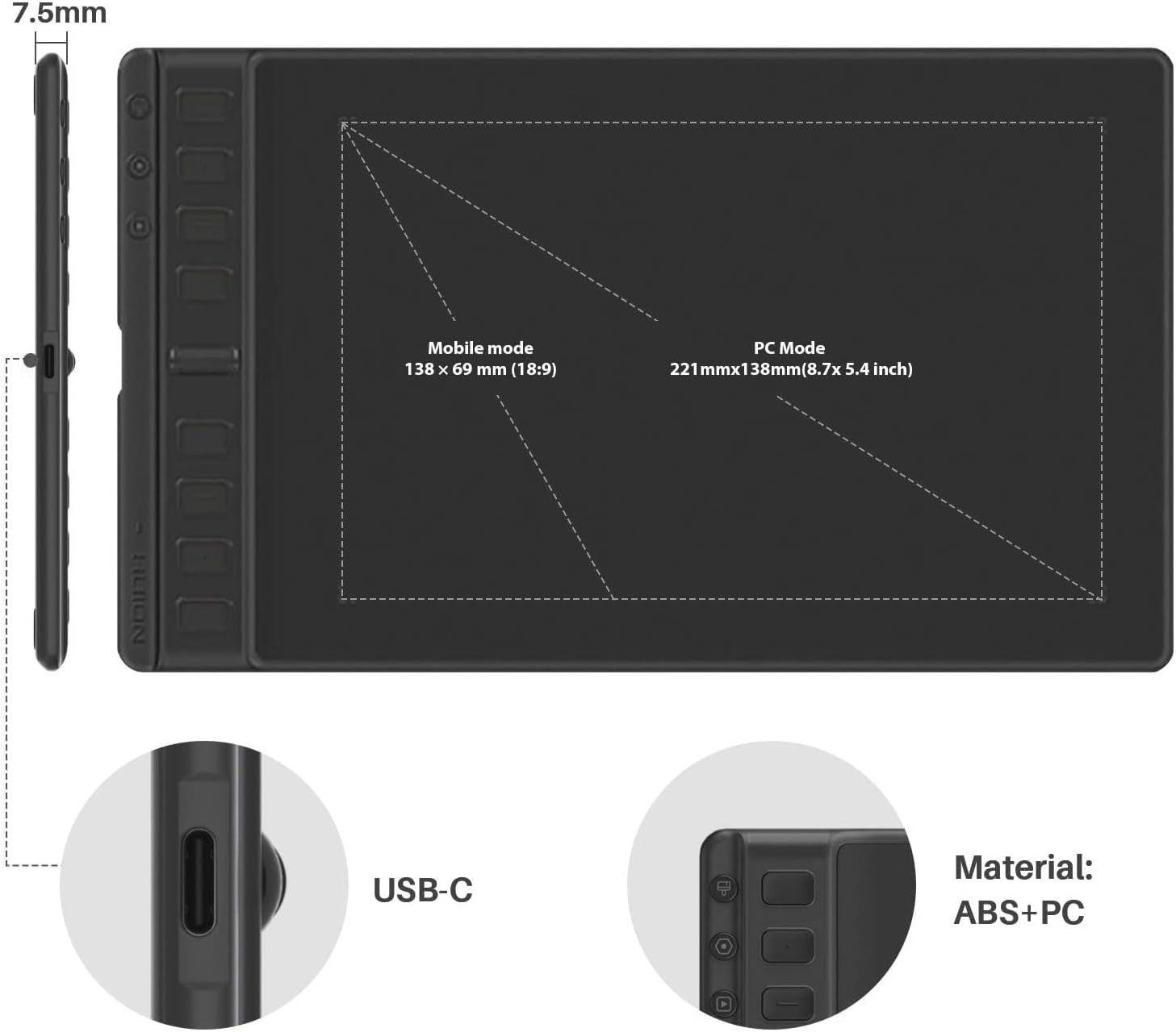H951P Ergonomic Graphics Tablet: Customizable Pressure Sensitivity & Multi-OS For DesignersFeatures:Elevates your digital artistries with H951P graphics drawing tablet featuring Advanced PenTech3.0, perfect precisions, near not latency, and natural pen on paper responsiveness for professional line control.Engineered with ergonomic PW110 styluses featuring silicone grip, customizable shortcut wheel, and 8 programmable keys, this drawing pad seamlessly connects to systems for crosses platform creativity.for digital illustrators, graphics designers, and content creators seeking studio in compact form, whether sketching character concepts or editing photos.Transform coffee shop corners into mobile studios – sketch directly onto tablets (OS 6.0+) or pair with desktop software like Photoshops for precisions design and animation workflows.Its ABS body houses,192 pressure levels and tilt recognition, mirroring traditional art tool while enabling shortcut rich workflows through driver customization for Suite and Clip Studio.Specifications:Product name: hand-painted boardMaterials: ABSOverall dimensions: 300x180x7.5~9.5mmMobile mode working area: 138x69mm (18:9)Computer mode working area: 221x138mmPackage Includes:1PC Drawing TabletNote:Please allow 0-1cm error due to manual measurement. make sure you not mind before bid.Due to the differences between different monitors, the Pictures may not reflect the actual of the item.