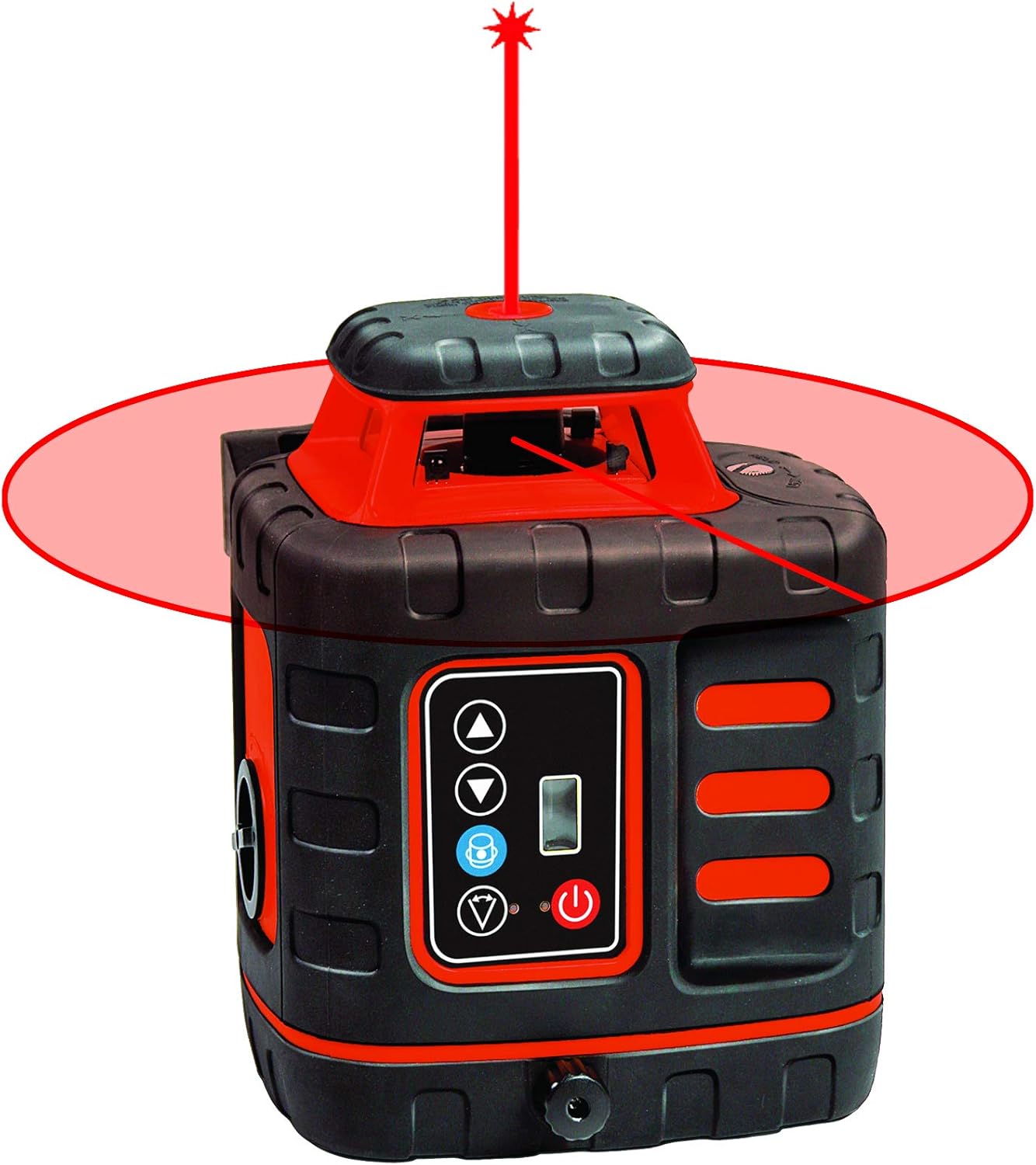 | Included Components | +3/16”/100’, Locking mechanism protects inner pendulum during transportation, Manual leveling in the vertical plane with 90° split beam, Range-scan modes include dot and two adjustable line lengths, Rechargeable battery pack, adapter, detector, remote, glasses, manual, case |