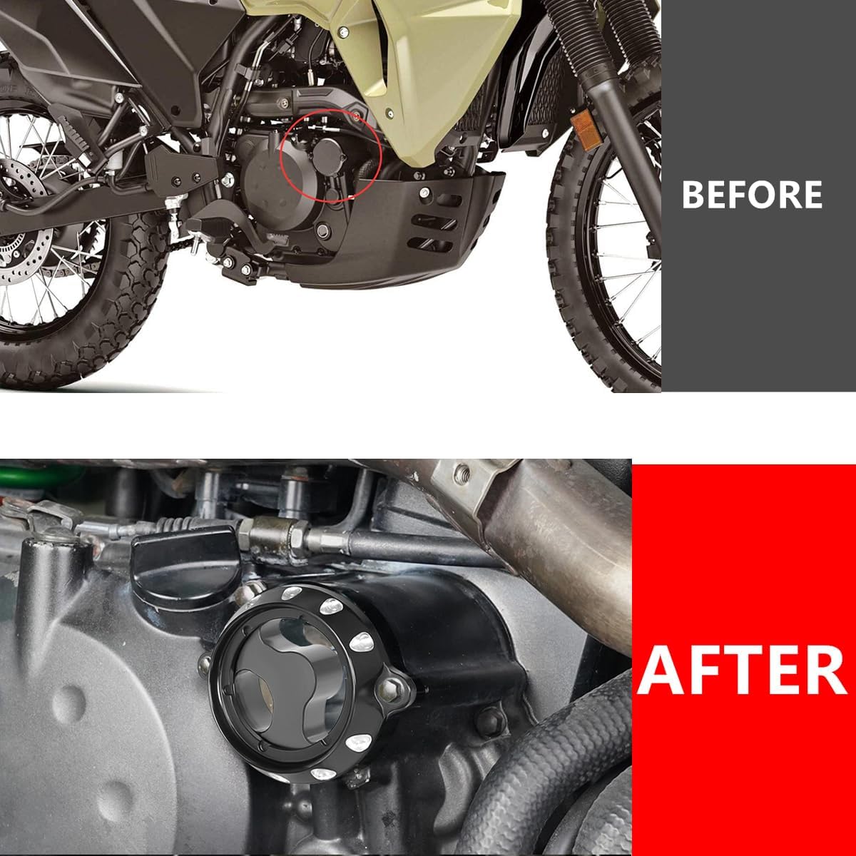 Material: 6061-T6 Aluminum Processing: CNC-machinedColor: Silver/Green/Red/BlackEasy to install without instructions.Original replacementTransparent Design: See-through design, wear-resistant and not easy to break off. Allowing you to figure out how it works in the engine, check out whether the filter and oil are contaminated, alerting you to change the engine oil.Upgraded Design: Sophisticated design with fine craftsmanship, take your bike up a notch.6061-T6 Aluminum Alloy: Made of premium 6061-T6 aluminum alloy, lightweight and high hardness for durability.CNC Technology: Machined by the latest CNC technology, incredible details without any burrs. Package Included: 1X Engine Oil Filter CoverThese Covers Prevent Debris And Moisture From Entering And Contaminating The Oil System.Standard Fitting And Easy To Remove.Instruction Of Installation Is Not Included.