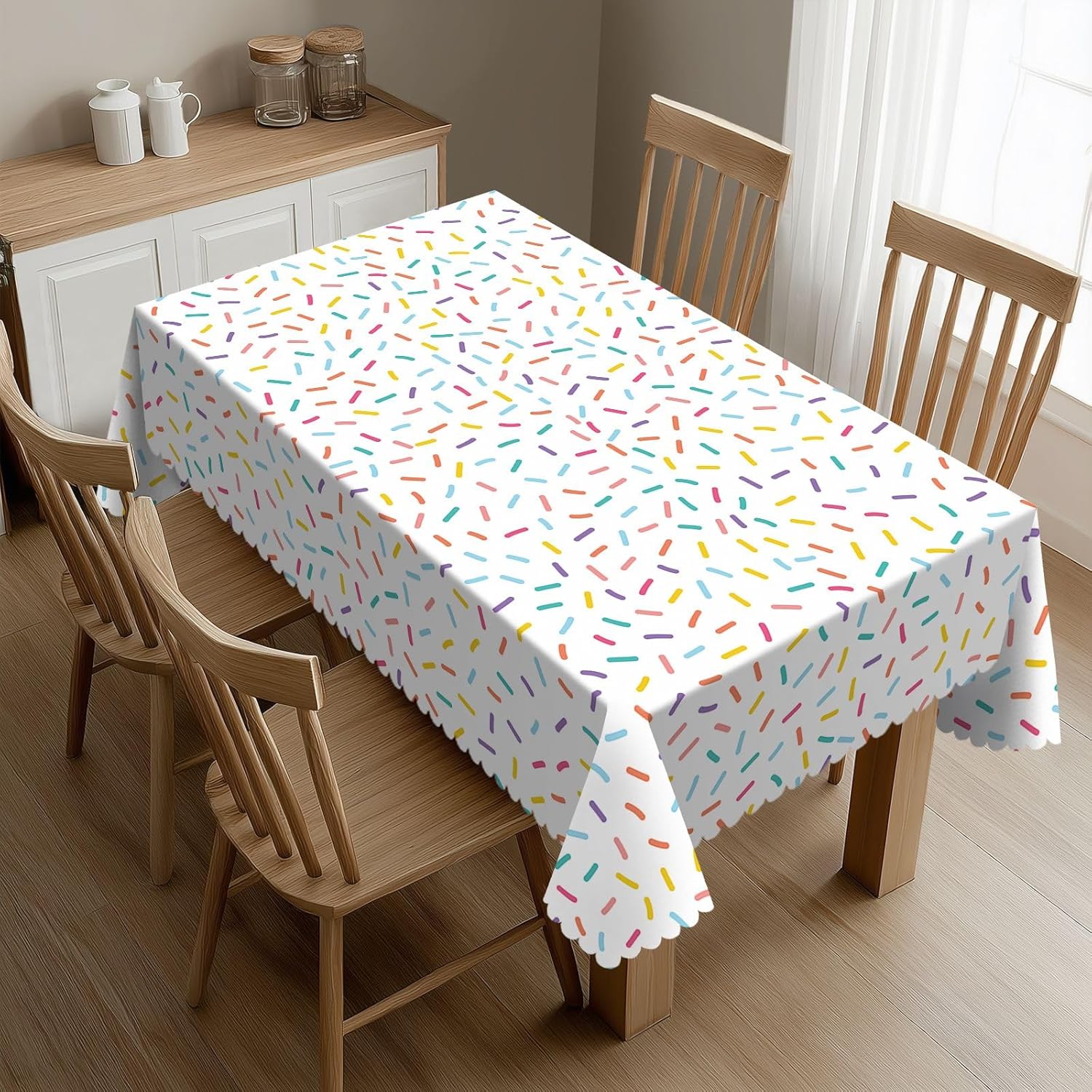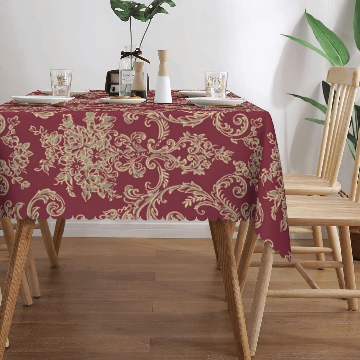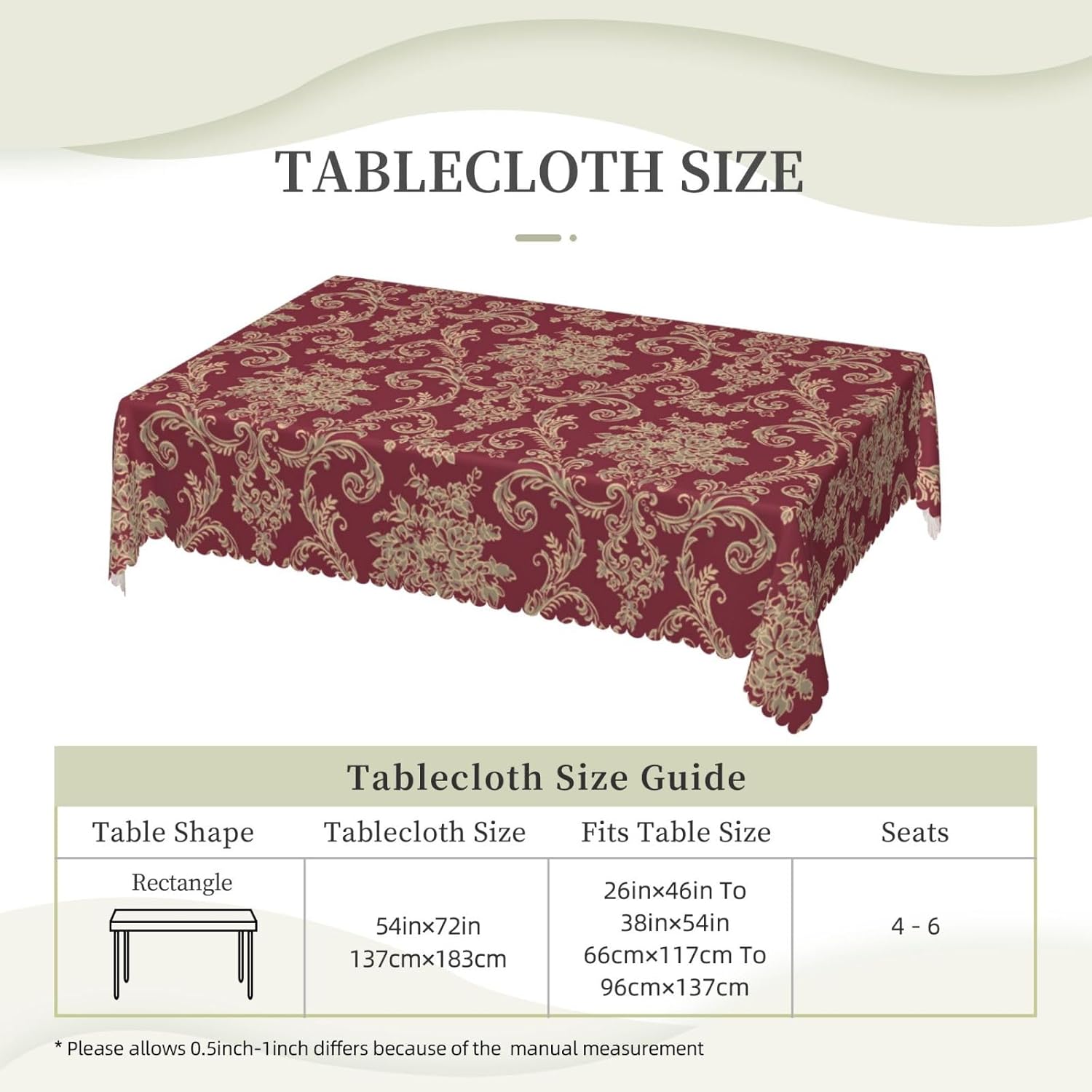 About Tablecloth1. Premium Fabric: 100% polyester that's soft yet durable2. Size : 54"x72" fits most rectangular dining tables3. Elegant Details: Delicate wavy lace for added sophistication4. Practical Features: Stain-resistant, fade-resistant, and wrinkle-free5. Versatile Use: Suitable for daily dining and special occasions alikeMulti-Functional Use Home Dining: Ideal for everyday meals, holiday feasts, and family gatherings Special Events: Suitable for weddings, bridal showers, anniversaries, and birthday parties Commercial Use: Cafés, bistros, and restaurant patio tables Outdoor Entertaining: Excellent for garden parties, picnics, and BBQ gatheringsEasy Maintenance Machine washable in cold water (gentle cycle recommended) Quick drying fabric, simply tumble dry on low or air dry flat Wrinkle-resistant material requires no ironing Stain-resistant surface wipes clean easilyUpgrade your table setting with this beautiful floral tablecloth that combines functionality with timeless style - the perfect finishing touch for any dining occasion