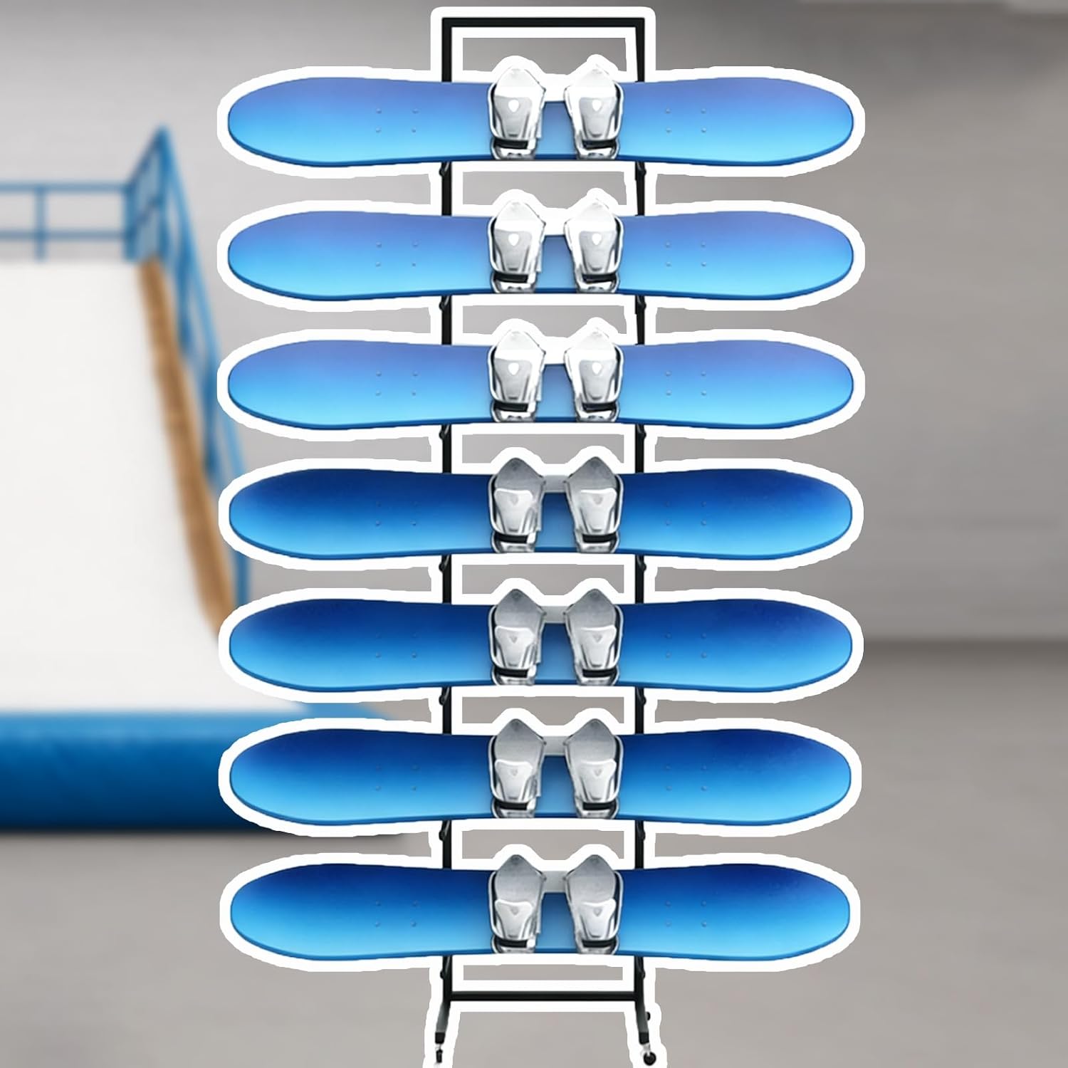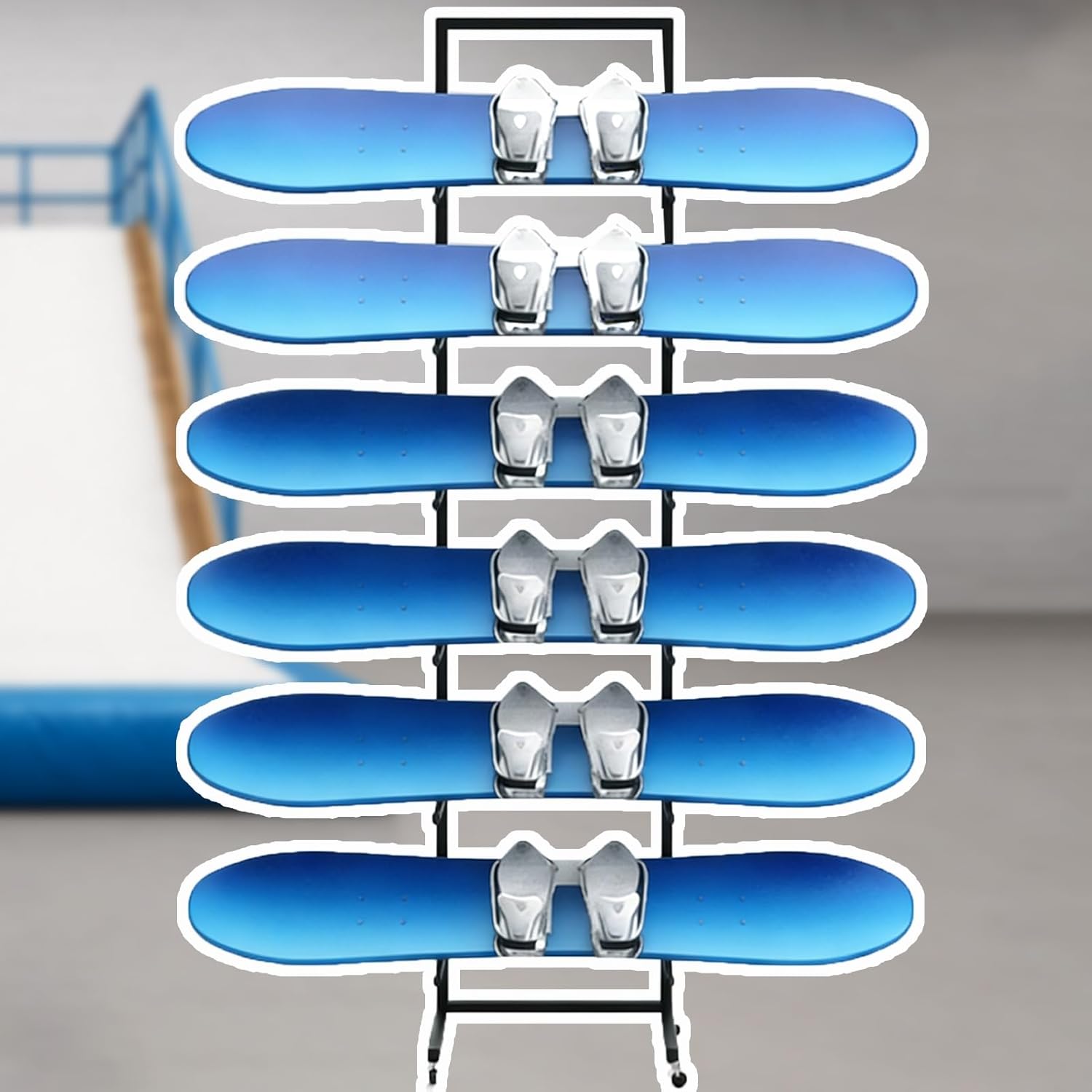 Have you ever had your snowboard leaning against the wall tip over and nearly hit your feet?Have you ever had your snowboards stacked haphazardly with poles scattered everywhere?Choose our snowboard rack—it's not only the ideal storage solution for winter sports enthusiasts but also a practical gift for skiing lovers.❉Package Include:- Ski Rack x 1(Excluding skis)❉Specifications:- Material: Iron- Surface: Varnished- Rack Height: 115 cm (45.3 in) / 135 cm (53.2 in) / 155 cm (61 in)- Rack Depth: 70 cm (27.6 in)- Rack Width: 60 cm (23.6 in)- Wall Thickness: 2 mm (0.08 in)- Separation slot depth: 50 cm (19.7 in)- Separation slot height: 20 cm (7.9 in)- Features: Lockable wheels- Size Available: (Snowboard) Holds 5 pcs / Holds 6 pcs / Holds 7 pcs❉Applicable Scenarios:- Features an iron mesh bottom for ventilation.- Features lockable wheels for easy transport.- Can be given as a gift for skiing enthusiasts.- Vertical floor-standing design saves wall space.- Slots with separators to prevent skis from bumping into each other.- Precision welding with thickened materials ensures long-lasting durability.❉Note:- If the goods you received are damaged or missing parts, please contact us by email and we will resend them to you in time.- There may be some 1-2 cm errors in manual measurement, please refer to the actual product.- Colors might slightly vary due to the shoot lights and on different monitors and screens, please refer to the objects received.
