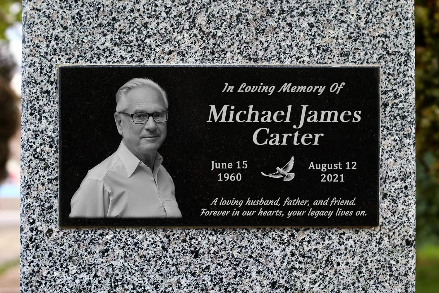 Personalized Granite Memorial Plaque – A Lasting Tribute Honor a loved one with a custom granite headstone for graves, designed for cemetery decorations for grave, memorial gardens, or home remembrance. This engraved plaque personalized is crafted from premium black granite, offering a dignified and timeless tribute. Deep Engraving for Permanent Clarity Each grave marker for cemetery is precision-etched, ensuring names, dates, and messages remain crisp and readable. Whether for gravesite decorations cemetery, memorial plaques for outdoors, or indoor displays, this plaque maintains its quality for years. Weatherproof & Durable for Outdoor Use Made from high-quality memorial stone, this plaque resists rain, sun, and snow, making it ideal for cemetery headstones for graves. Whether placed at a burial site or used as a garden memorial stone, it will endure harsh conditions without fading. Perfect for Any Memorial Setting This granite headstone for graves can serve as a tombstone for grave, grave marker for cemetery, or a memorial garden stone. Its polished surface enhances readability, while its elegant design complements cemetery decorations. Effortless Customization & Secure Shipping Creating a personalized memorial plaque is easy. Whether you need a personalized memorial gifts, temporary grave markers, a flat headstone for graves, or a custom memorial plaque, our expert engravers ensure precision and care. Each memorial plaque for cemetery is securely packaged to prevent damage, ensuring it arrives in pristine condition. Our memorial garden stones are simple to install and require minimal maintenance. A meaningful way to honor a loved one, this rest in peace memorial decoration serves as a lasting tribute that preserves cherished memories forever. Grave stones for cemetery for humans. Head stones for cemetery for humans. Headstones for graves for humans.