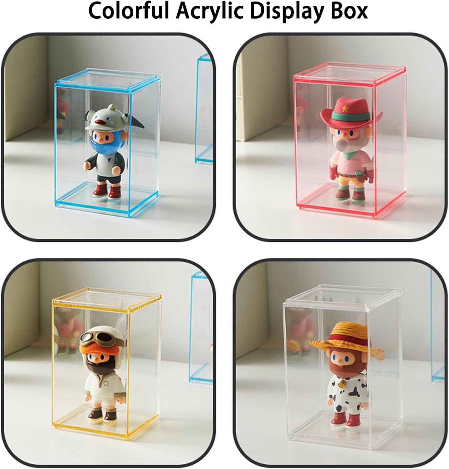 3 PCS Acrylic Display Boxes Colorful Figures Display Case for Funko Pop Figures, Stackable Blind Box Fully Assembled Dustproof Storage Organizer Box for Lego Collectibles Action Figures Pop Mart