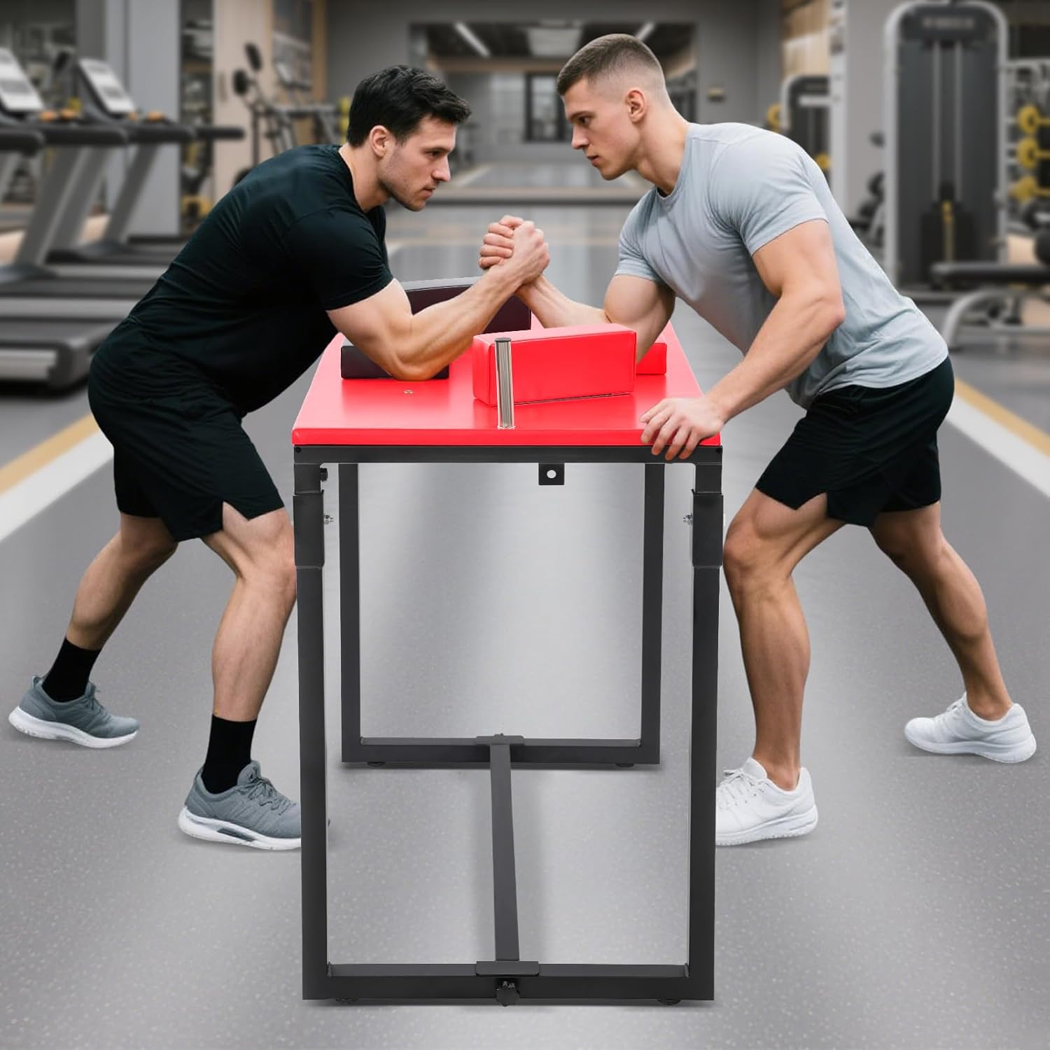 DescriptionThis foldable arm wrestling table is engineered specifically for building wrist strength. Its foldable design allows for convenient storage, making it ideal for use at home, in the office, or at the gym. The table is constructed from durable materials, offering stability and long-lasting performance. Suitable for everyone from beginners to professional athletes, this product effectively enhances wrist strength.DetailsProtection Pads: Featuring elbow pads and forearm pads, this table provides effective wrist protection and helps prevent injuries during intense training or competition. The adjustable forearm pad can be easily moved to accommodate both left-handed and right-handed users, significantly enhancing versatility and comfort.Reinforced Bottom Crossbar: The extended crossbar significantly improves the structural stability of the unit, minimizing wobble.ApplicationThis product is suitable for fitness clubs, homes, offices, etc. It is suitable for professional players, amateur enthusiasts, and fitness enthusiasts. SpecificationMaterial: Steel, PU, EVA Foam, SpongeColor: RedProcess: Spray PaintingStyle: ModernMounting Type: Free StandingProduct Size: 90*65*100cm/35.4*25.5*39.3inPackage Size: 94*69*26cm/37.01*27.17*10.24inGross Weight: 27.5kg/60.63lbsNet Weight: 26.13kg/57.61lbsPackage Included1* Arm Wrestling Table2* Elbow Pads 2* Forearm Pads2* HandlesNotesPlease allow the slight color difference caused by the shooting light and 1-3cm error due to manual measurement, and make sure you do not mind before ordering.