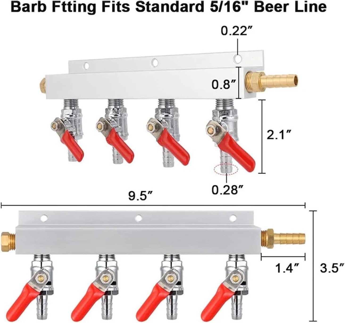 Multi-way CO2 Gas Distribution Manifold Splitter, 2/3/4 Way Home Brew Check Valves Draft Beer Kegerator 5/16 Barb,9mm fittingsFeatures:Machined from a single piece of aluminum5/16 inch Barbs on outlet valves for use with professional draft installationsBuilt in mounting plateChrome Plated valves with spring loaded Ball check valvePackage include:1*Co2 Gas Manifold distributor==========Feature : Stocked,Eco-FriendlyQuantity : 1 pcsModel Number : gas manifold distributorBar Accessories Type : CO2 DistributorCertification : CE / EU,CIQMaterial : MetalType : Bar AccessoriesName : manifold distributorModel : CO2 SplitterNumber : gas manifoldType : Gas Line Manifold SplitterSize : 2/3/4For : Home brew Draft BeerWith : 5/16" fittingStyle : muti - Way Co2 Splitter