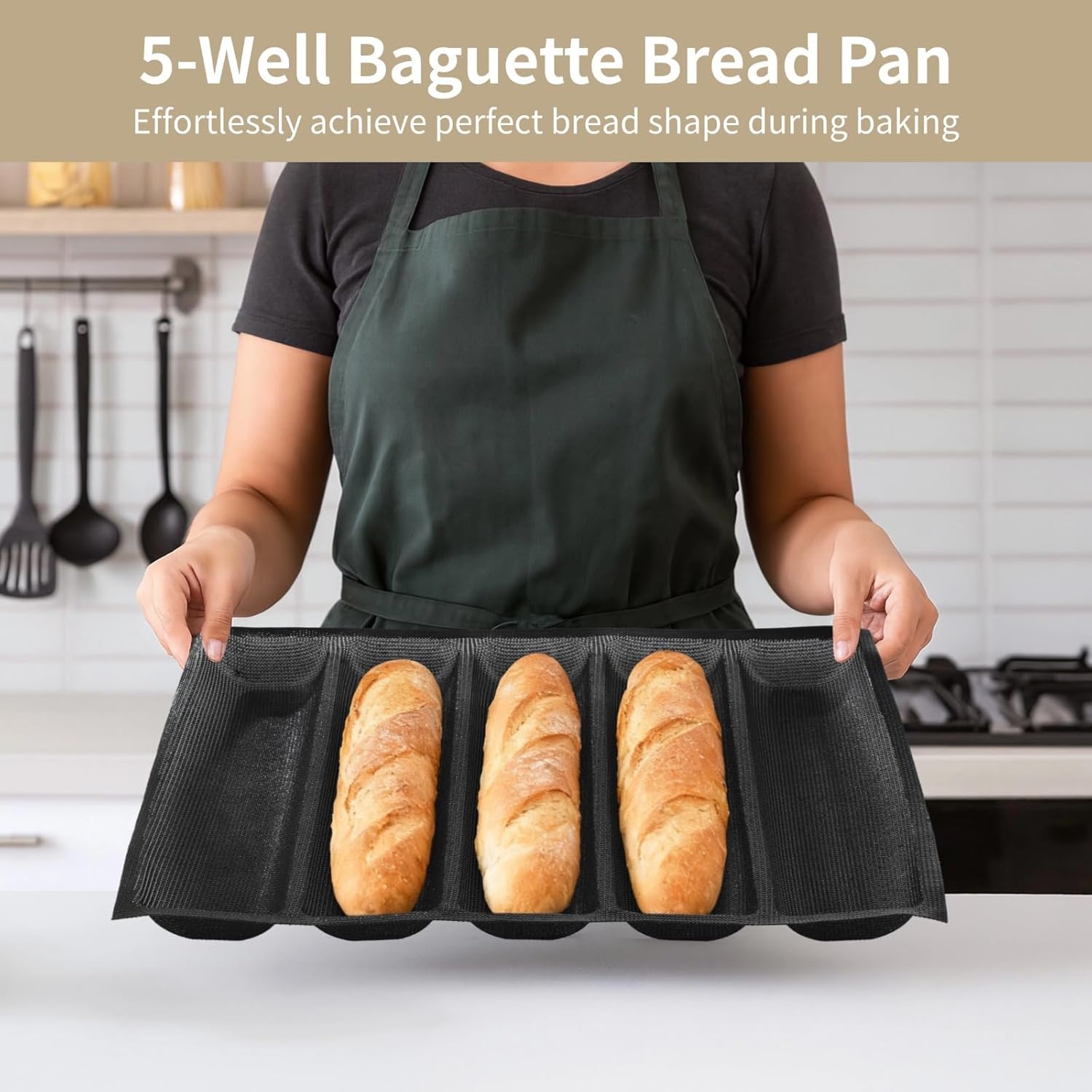 Color: Black & RedMaterial: Fiberglass, SiliconeSize: Baguette Mold: 18.1 x 13.2 in / 46 x 33.5 cm, Anti-scalding Clip: 4.4 x 3.3 in / 11.2 x 8.5 cm, Spatula: 8.27 x 1.57 in / 21 x 4 cm, Brush: 9 x 1.5 in / 23 x 3.8 cmPackage Includes: 2 x Baguette Molds, 1 x Silicone Spatula, 1 x Silicone Brush, 1 x Anti-scalding ClipNote:- Please refer to the measurement. Tiny measuring error is allowable in normal range.- There might be a little color difference due to the monitor, camera or other factors, please refer to the physical item.