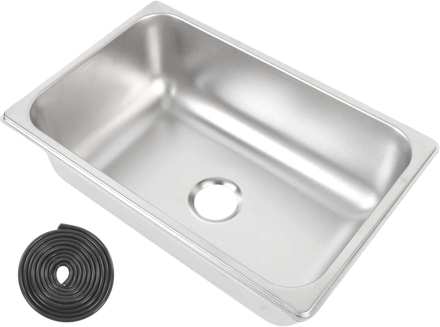 "1. HEAVY DUTY CONSTRUCTION: Made from 304 stainless steel, this sink boasts a highly polished brushed finish that resists scratches, wear, high temperatures, and deformation, easy to maintain and no grime build up, making it a long lasting addition to your kitchen. 2. SPACE SAVING DESIGN: Engineered for embedded mount installation, this sink maximizes your countertop space, with installation hole of / 11.65x7.32in, R33, allow for seamless integration, maintaining a and functional kitchen appearance. 3. SPACIOUS INTERIOR CAPACITY: With generous dimensions of 290x180x100mm / 11.42x7.09x3.94in, this basin sink is ideal for washing fruits, vegetables, and dishes. It's an excellent choice whether you're in your home kitchen, RV, or heading out for camping and picnicking adventures. Specification: Item Type: Stainless Steel Bar Sink Material: 304 Stainless Steel, Polished Brushed Finish External Dimensions: Approx. 316x206x100mm / 12.44x8.11x3.94in Capacity: Approx. 290x180x100mm / 11.42x7.09x3.94in Drain Pipe Diameter: Approx. 40mm / 1.57in Installation Opening Size: Approx. / 11.65x7.32in, R33 Application: Suitable for RVs, Yachts, Boats, Kitchens and other scenarios. Large internal capacity of 290x180x100mm for washing fruits, vegetables, dishes in the kitchen and other items in the bathroom Package List: 1 x Sink 1 x Rubber Gasket Note: Installation requires drilling holes, it is strongly recommended to have professional engineers assist with installation to ensure better shopping experience."